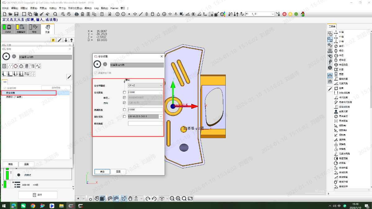 请问各位!蔡司三坐标安全平面.如何才能像海克斯康一样.删除元素和元素之前的安全平面