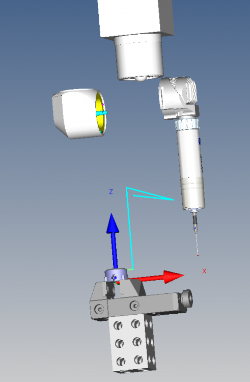 If the tolerance range is large enough. You can use a flat ended pin gage that fits freely inside the hole and take point on it. You can then just subtract distance between beginning of cylinder (plane or point) and the point on the pin from the total length of that pin gage ( You will need to tweak this depending on if the pin is sitting above or below the beginning of cylinder). I usually use prompt for operator to input total length of pin gage to allow use of different pin gages for proper fit. Things to be careful about: The pin gage should not be chamfered or rounded at the edges. In order to create the point feature for the point on pin: 1) Create secondary alignment using the angled cylinder 2) Create new point feature using this alignment and provide appropriate X,Y, Z, i, j, and k values. 3) Use programmable stop to allow operator to put a pin before taking the point (and after as well to remove pin if needed). Add good enough clearance distance to allow clearance to put the pin in. 4) Also, change the search distance before nominal for probing to avoid collisions.