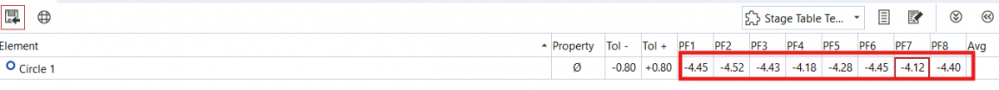 above table show deviation of all cavity but we need to actual value of p1\pf2/pf3 like that(when measure distace,circle diameter etc)