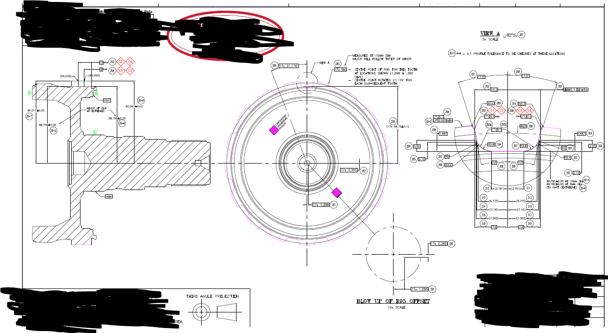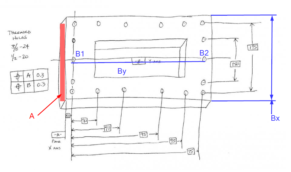 O.K. Lets try: Reference A is the left side of the body in your drawing. Reference B is unclear. On the one hand, it could be formed from the sides of the body (Bx) or from two holes B1 an B2 define (By). The Position tolerance definition match not the norm DIN EN ISO 1101. In the position tolerance 0.3 to A, no further degree of freedom is restricted. And no CZ is specified either. This means that each hole is toleranced individually. It is NOT a drilling pattern. The same applies to tolerance 0.3 for B, although in this case there is the additional issue that ‘B’ is not clearly defined. Regards Karsten