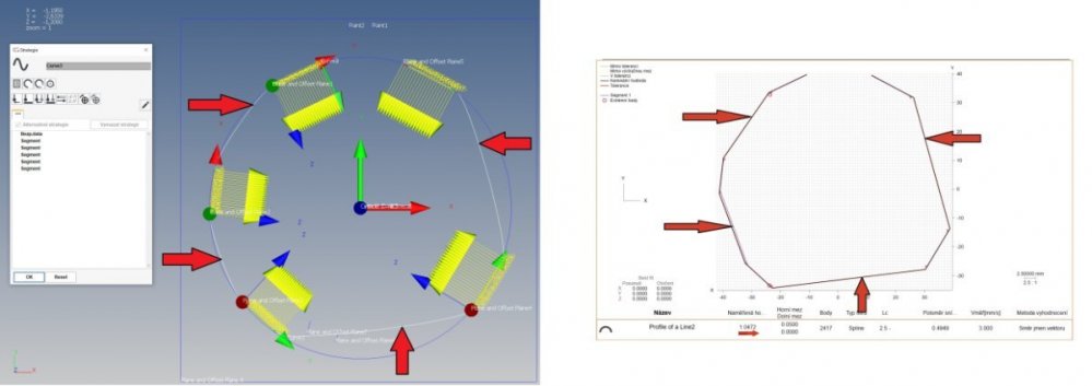 Hello, I would like to ask for help with a Profile of a Curve evaluation involving 5 segments as a single feature in Calypso 2023. I created a section cut and selected 5 lines, then generated a curve with 500 points on each. I have measured and evaluated the data, but the evaluation incorrectly includes the measurement paths (or automatically generated paths) between the segments, shown as white lines in the picture. Is there a way to evaluate the 5 segments as one continuous feature while excluding these connecting paths? I would appreciate any help you can provide. Best regards, Lukas