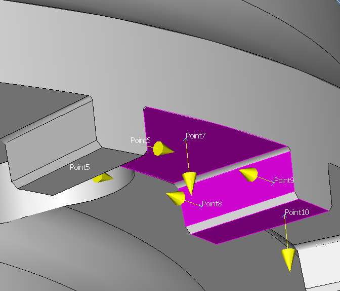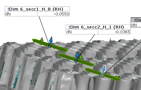 I am still not sure what you want to measure 🙂 Do try to get the highest point on the radius of the walls of the hexagons? The measurement volume is the optic set used on the atosq 12m that determines the size of the box that gets data with one shot. For example MV100, 170, 350 ... The reason for asking is, that this is (next to the camera sensor resolution) the second big decider of the min point distance. For small radii or edges you need a close point distance. From the pictures i would suggest trying out different sensor angles to the part and different settings to get better data. There are alot of artifacts around the edge/radii. From this picture you can tell something is off by the normal vectors of the points (green). They should be all roughly like the vector of secc1. Also i would reduce the length of the edge of the point edge tool, so you can determine were it touches better, maybe try touch point disc with a very small disc. The disc could help with a bad mesh.