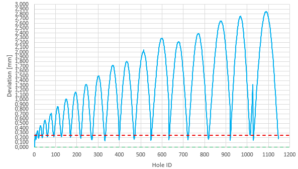 @Andrea Stancin Unless you are using some old Renishaw M2 styli, all of the M3/M5 styli are typically either carbide, carbon fiber, or ceramic - meaning they can't be bent without them breaking. Have you cleaned the reference sphere? Ensured that the reference sphere is tight to the reference sphere body? Ensured that the reference sphere body itself is locked down on the machine? What does your MasterProbe sigma values look like? Can you show a picture of the buildup? What machine/sensor is this?