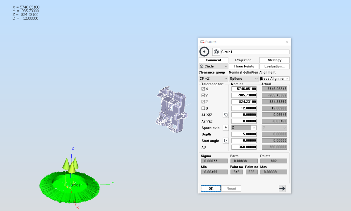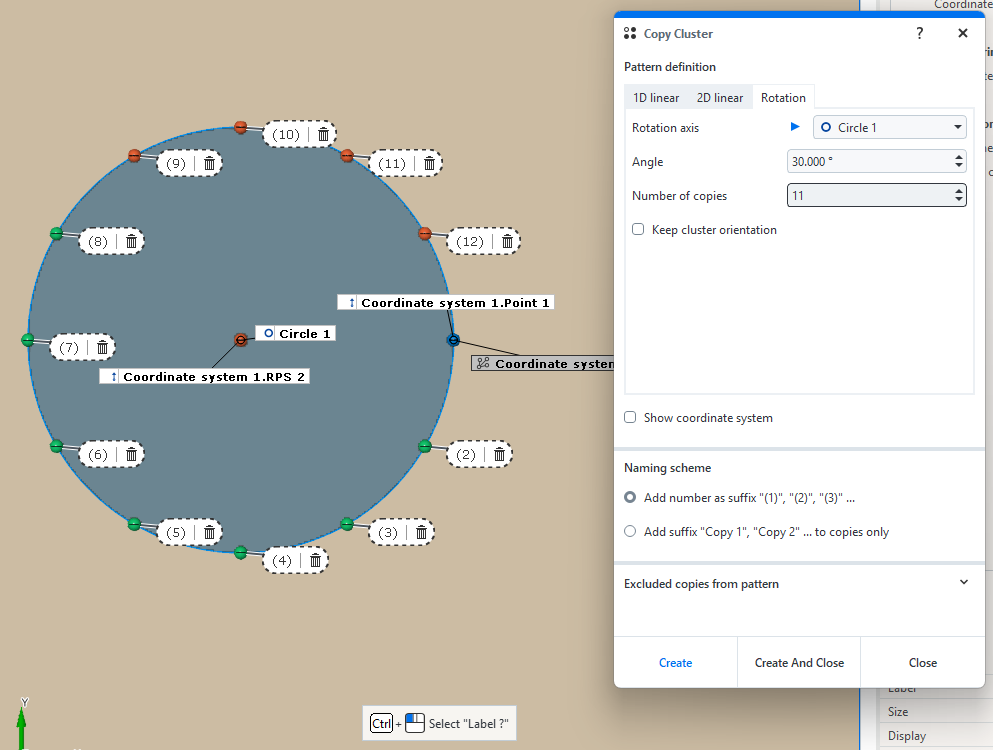 Hi Dominik, it is possible with create cluster -> copy cluster ZEISS Quality Tech Guide I created the first point as an offset point of the circle (offset = radius). The circle is then used as rotation axis for the cluster copies. If it's a more curved surface, an approach might be to create a surface curve first and then create 12 intersections from plane-curve for example. Nanno