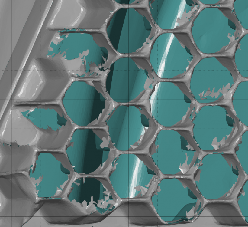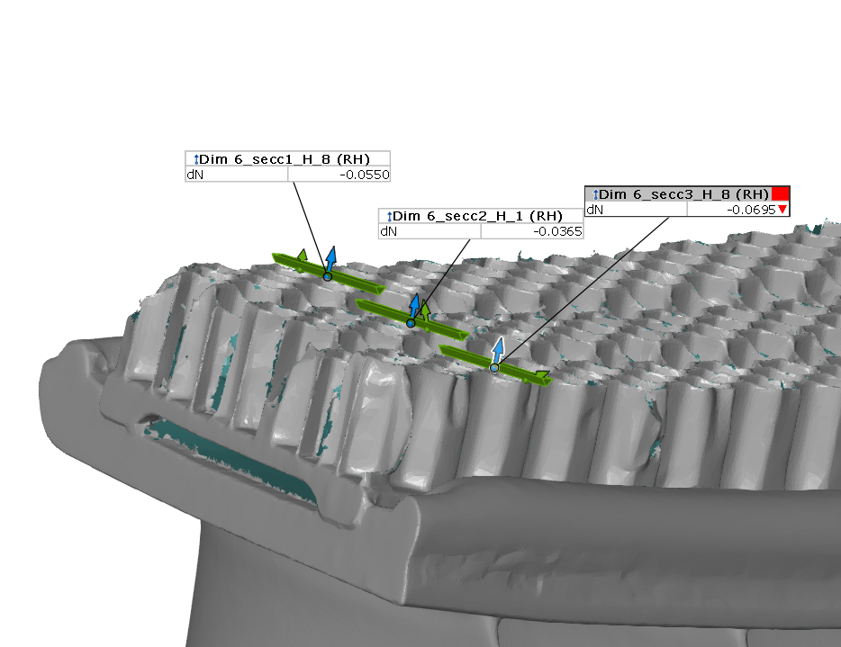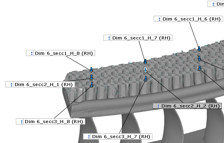 Hello Jochen, Sorry for the confusion. We are trying to measure the radius at the highest point on the top surface of the honeycomb structure. The measurement volume used on the ATOS Q is MV170. Another challenge is that the position of the honeycomb may vary between different parts, and the wall thickness is only 0.1 mm, which requires high-resolution scanning and careful alignment. The irregular vector orientation in the scan data is due to the plausibility check being disabled. We had to disable it because the system would otherwise reject valid points on the top of honeycomb. We suspect that during polygonization, the software may be filtering or simplifying some of the scan data, especially in areas with sharp transitions or thin walls. We will review the polygonization settings to preserve more detail. Thankyou very much, Best regards,