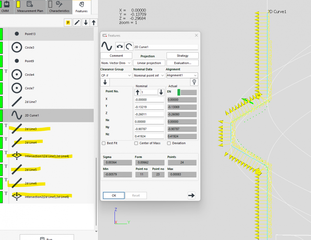 Howdy, was wondering if anyone knew of a reason as to why i get these weird curly results for runouts. the other side looks great. scan direction for feature is the same for datum cylinder. is this a projection issue?