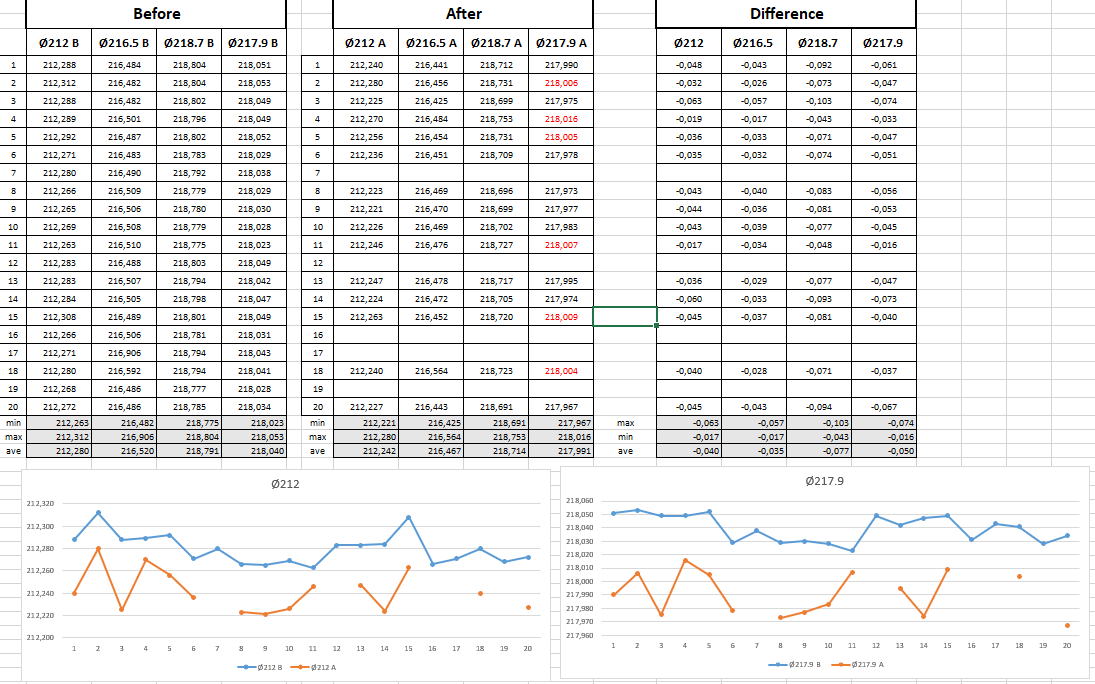 [Ed...] Posted October 2 Share Posted October 2 Hello my friends, I`m thinking about something how can I evaluate results before and after heat treatment. Lets say, I would like to take 5 parts, measure them in soft condition and then after HT. And then I would like to see comparison between before and after. At the moment I`m doing it manually in Excel. Maybe someone have some ideas, suggestion or already ready template? Thanks for any replay and help 🙂 Link to comment Share on other sites More sharing options...