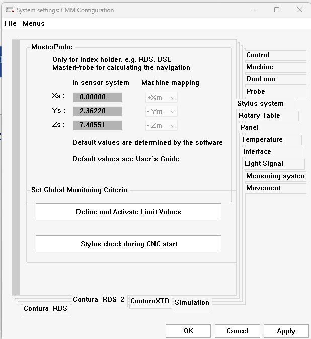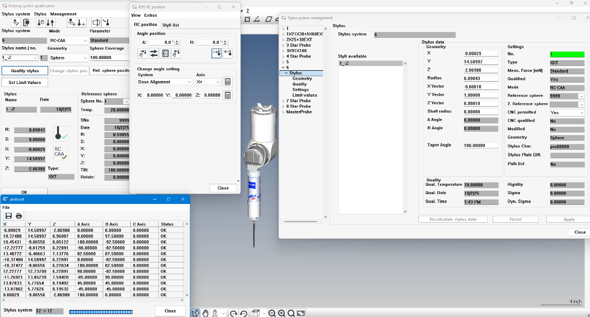 [Pe...] Posted Thursday at 02:58 PM Share Posted Thursday at 02:58 PM Found a mildly infuriating problem. Running simulation and all the sudden all my RDS probes acquired odd values in the X, Y and Z positions. It started visually showing the stylus and head something like 6 inches off the part, but still gives good nominal feature values after simulation. I try to requalify my probe. First, it says that I cant do it because its going to shank out on the reference sphere or its at the wrong angle. Wierd because Ive been simulating the same probe for years. So I grab the master probe, set the reference sphere location, then try again and it works. But now I have completely different XYZ values that dont make any sense. I hit requalify again, it does its 12 angles, and then a completely different result: Same probe 3 times in a row. Not entirely arbitrary because 5.232 seems to be repeating in various places. Any thoughts? Link to comment Share on other sites More sharing options...