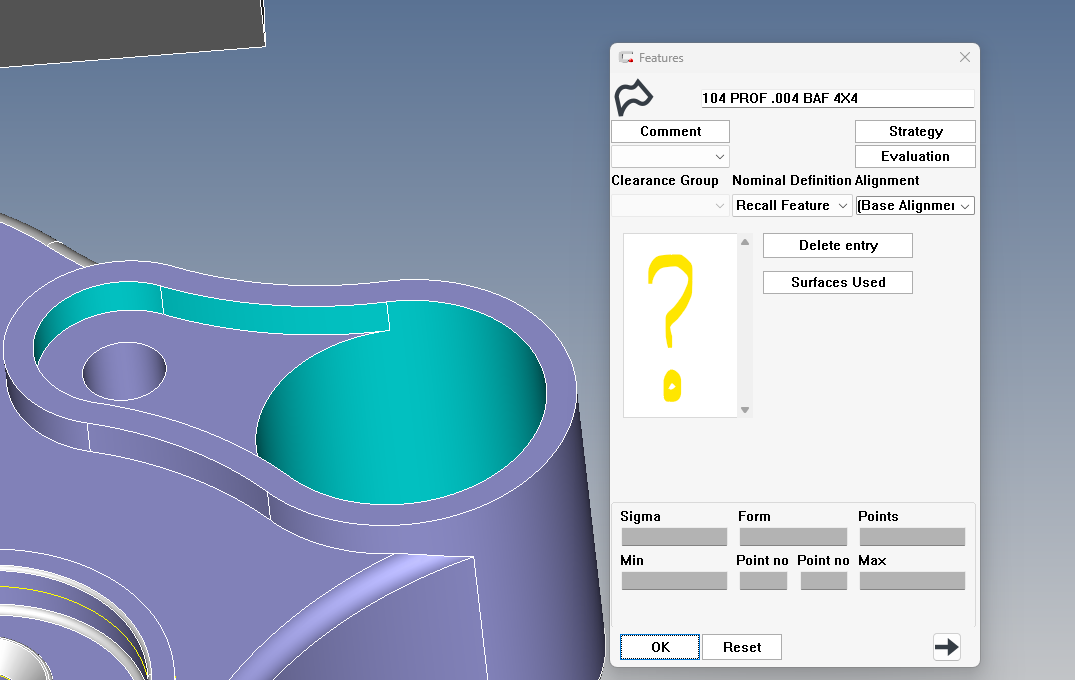If you have strategy in this feature, then you can click on button "Surfaces used" to auto select - if you just recalled mesured points, then it won't select anything.