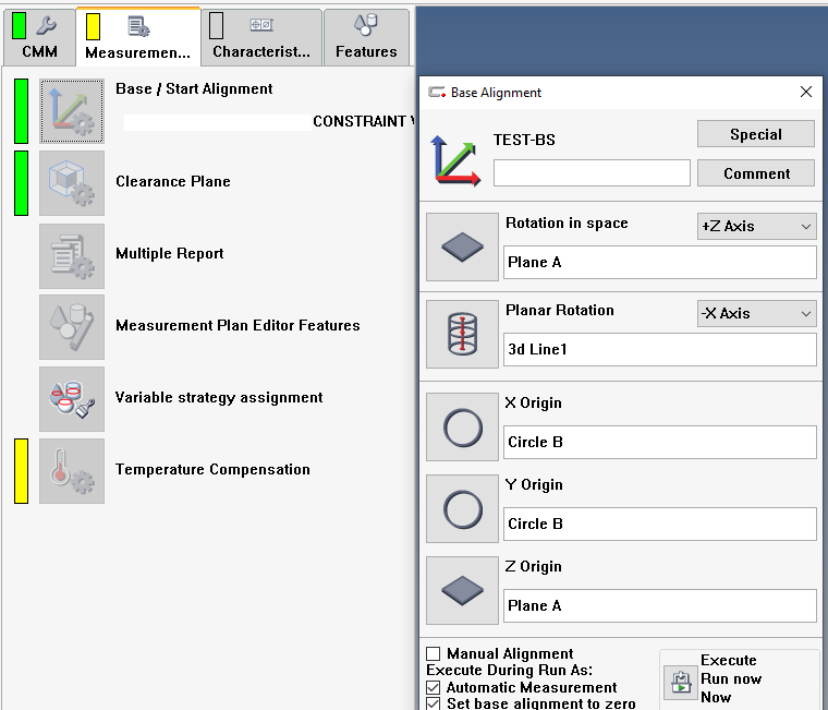 [Ri...] Posted Monday at 08:58 PM Share Posted Monday at 08:58 PM (edited) I think you are getting all of this confused because you are hopping around menus, and looking at the data in three different ways. Like Kyle said, the Base Alignment does not abide by the rules you have set in the Measurement Setting (ISO 5459, and Outer Tangential). Later versions of Calypso do allow you to turn on the ISO 5459 for coordinate systems, but that isn't the case for you. So your Base Alignment is most likely not using ISO 5459, and most likely has the feature evaluation set to Gaussian. Your feature is measured inside of the Base Alignment, which is why the deviations inside of the Feature and the Position if measured to the Base Alignment are 1:1. Now, when you create the Position and build your DRF manually, it is going to use Outer Tangential for the Datums, and ISO 5459 constraints, which is why your results aren't 1:1. You can always right-click on the Datums inside of the Position and change them back to Gaussian, and turn off ISO 5459. Edited Monday at 08:58 PM 2 Link to comment Share on other sites More sharing options...