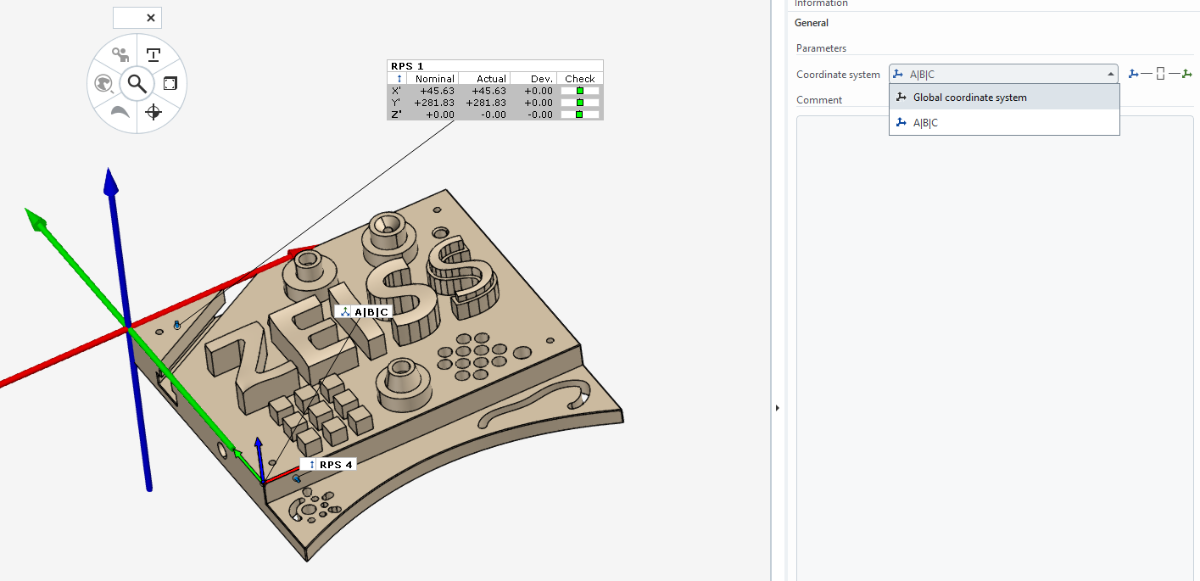 [Na...] Posted 22 hours ago Share Posted 22 hours ago Hallo, man kann ein lokales Koordinatensystem zur Anzeige verwenden: für Prüfungen lässt sich das Koordinatensytem in den Eigenschaften umschalten: Und auf Verdacht vielleicht noch dieser Artikel 🙂 https://techguide.zeiss.com/en/zeiss-inspect-2025/article/how_to_visualize_checks_from_different_alignments_in_table.html Link to comment Share on other sites More sharing options...