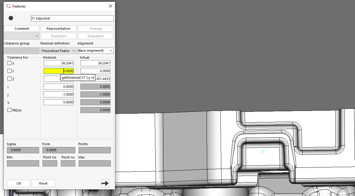 [Ch...] Posted Wednesday at 06:33 PM Share Posted Wednesday at 06:33 PM Hello, For manufacturing reasons, the X1 datum on a part I am trying to measure has been offset by 6.0mm compared to X2 and X3. Because of this, the X plane is tilted when I use points X1-X3 to create a plane. I have tried to correct this by creating a theoretical point that is offset by 6mm. However, when I go to create the plane by recalling feature points, theoretical points are not able to be selected. Any tips to solve this? Or a better measurement method? Link to comment Share on other sites More sharing options...