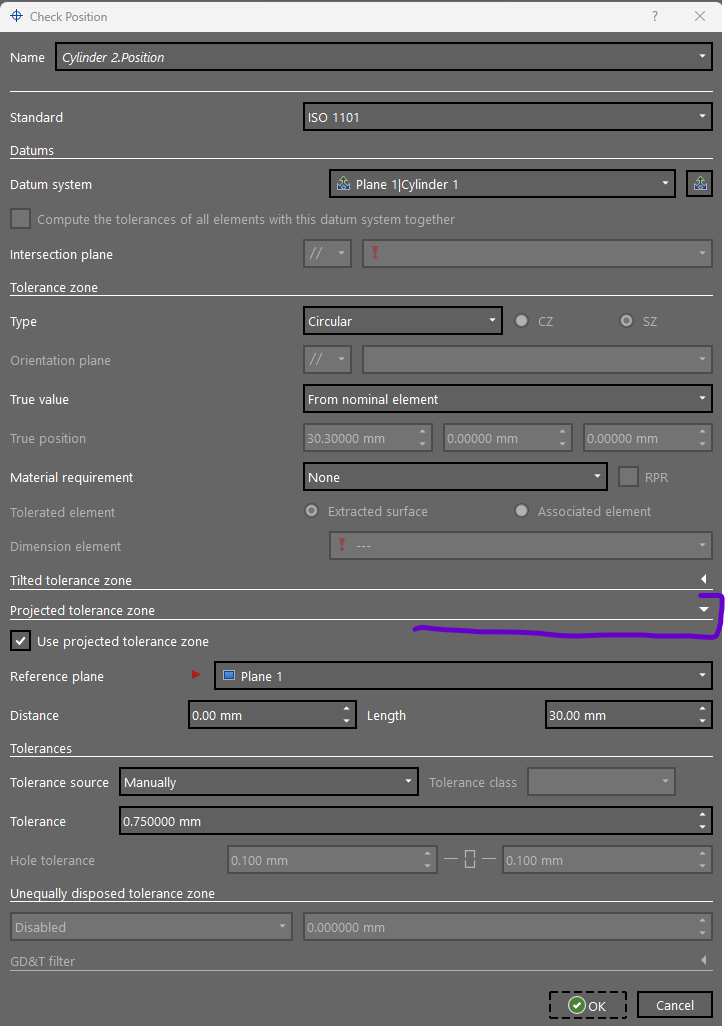 Hallo Zusammen, wenn das P im Bezugsrahmen angeben ist. Wo kann ich in Zeiss inspect dann die projizierte Toleranzzone angegeben.