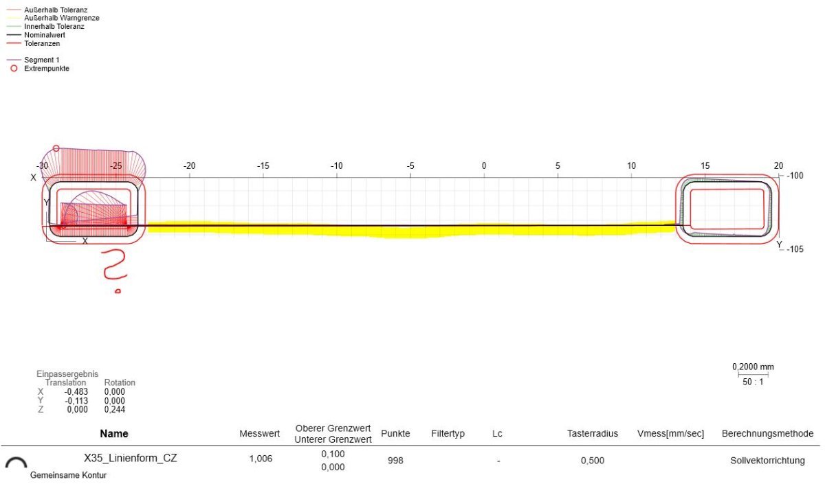 [Fl...] Posted yesterday at 06:44 AM Share Posted yesterday at 06:44 AM Hallo zusammen, wie kann ich die Linienform mit gemeinsamen Bezug CZ messen? Ich habe die beiden Konturen jeweils als 2d-Kurve gescannt und über Punkte-Rückruf in eine 2d-Kurve zurückgerufen. Die 2d-Kurve dann in der Linienform ohne Bezug ausgegeben. Leider erhalte ich keine plausiblen Messergebnisse. (Ergebnis ca. 1,000 mm) Vielen Dank im Voraus für die Hilfe. Link to comment Share on other sites More sharing options...
