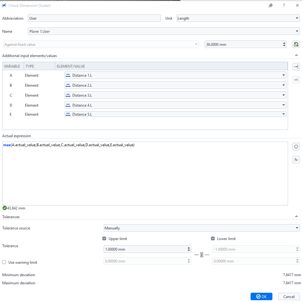 [Má...] Posted yesterday at 07:04 AM Share Posted yesterday at 07:04 AM (edited) Hello, I would like to create a user defined check. I would like to get the maximum from different lenght dimensions (e.g.: A,B,C,D actual value), but only take the value into account if the dimension is within 40 mm. How can I create such conditional entries? I guess I should combine it with if statement. Best regards, Máté Tömöri Edited yesterday at 07:05 AM attached picture Link to comment Share on other sites More sharing options...