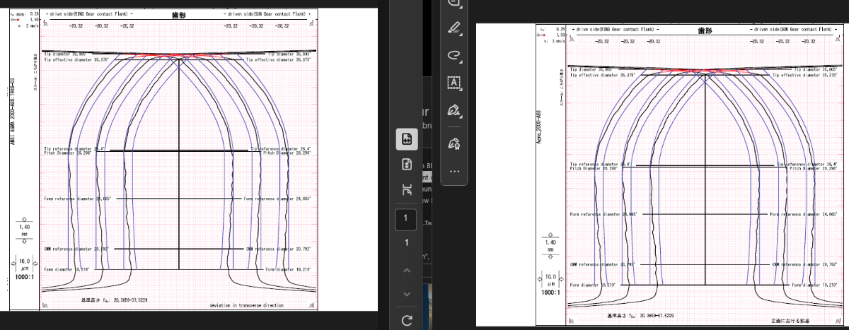 [WM...] Posted Thursday at 08:34 AM Share Posted Thursday at 08:34 AM Everyone, please help me. I am comparing the results of exporting the same ACT file using GearPro versions 5.6 and 6.2. After combining the two results, I noticed that the K‑chart lines differ in the areas where crowning is present. Could you explain why such differences occur? Also, if there is a way to output the K‑chart line as text data—similar to the XSLT output for tooth profile and lead—please let me know. ver6.2.pdf ver5.6.pdf Link to comment Share on other sites More sharing options...