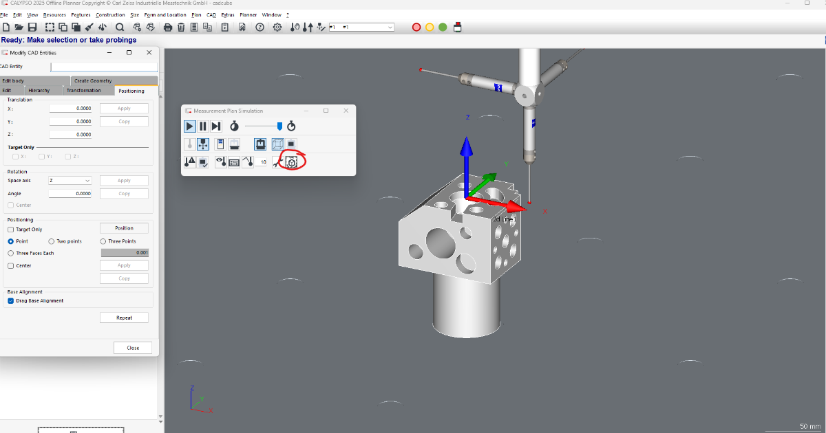 [Ri...] Posted 13 hours ago Share Posted 13 hours ago Just an FYI - Planner/Simulation will not longer simulate correctly if the model for your part is still set to machine coordinate zero (top-left corner). In the past, this was never a requirement, but it appears that it is forced in 8.0 now. You can move this at any point, it will not have any effect on your program if you do it before or after it is programmed. Before model is moved (hard to see, but essentially it just doesn't move). After model is moved. In the Measurement Plan Simulation - select Modify CAD Model - on the Positioning tab - select your CAD Model - enter the appropriate Translation values (you can always start with half of your measuring volume) - click Apply. Link to comment Share on other sites More sharing options...